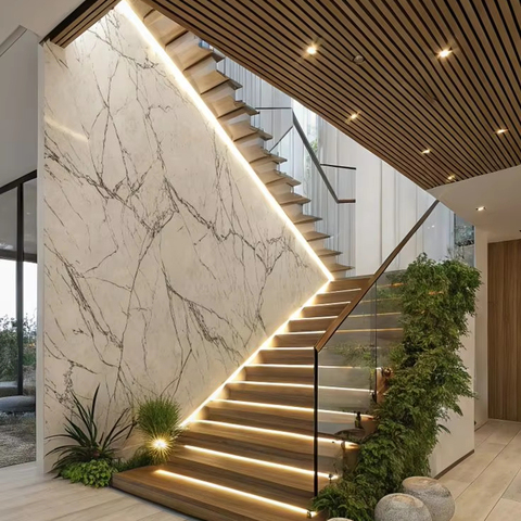 Prima Wood Tread Staircase Fashion Simple Straight Stairs High Quality Straight Stairs LED Step
