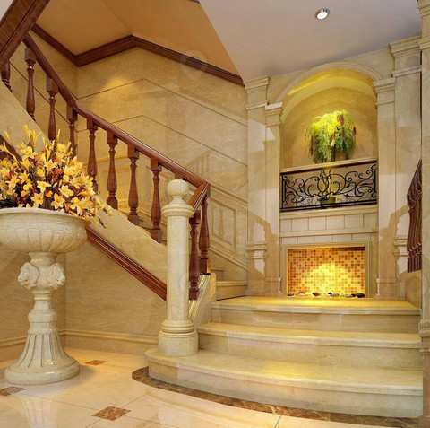 Prima Stijlvolle Massief Houten Trap Met Marmeren Treden Moderne Trappen En Prefab Ladderontwerp Voor Villa 'S